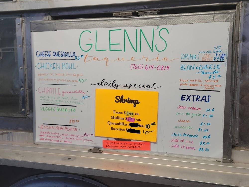 Welcome to Glenn's Taqueria, your go-to destination for authentic Mexican cuisine in Independence, CA. Indulge in a mouth-watering selection of tacos, burritos, and quesadillas, complemented by a vibrant variety of salsas. Enjoy fresh choices of meat including asada, adobada, chorizo, chicken, and shrimp, along with refreshing agua de horchata and jamaica. With an inviting atmosphere, outdoor seating, and swift service, it's perfect for lunch, dinner, or a solo bite. We cater to everyone, from families to tourists, and offer convenient options like delivery and takeout. Join us at 305 S Edwards St and savor the flavors of Mexico!